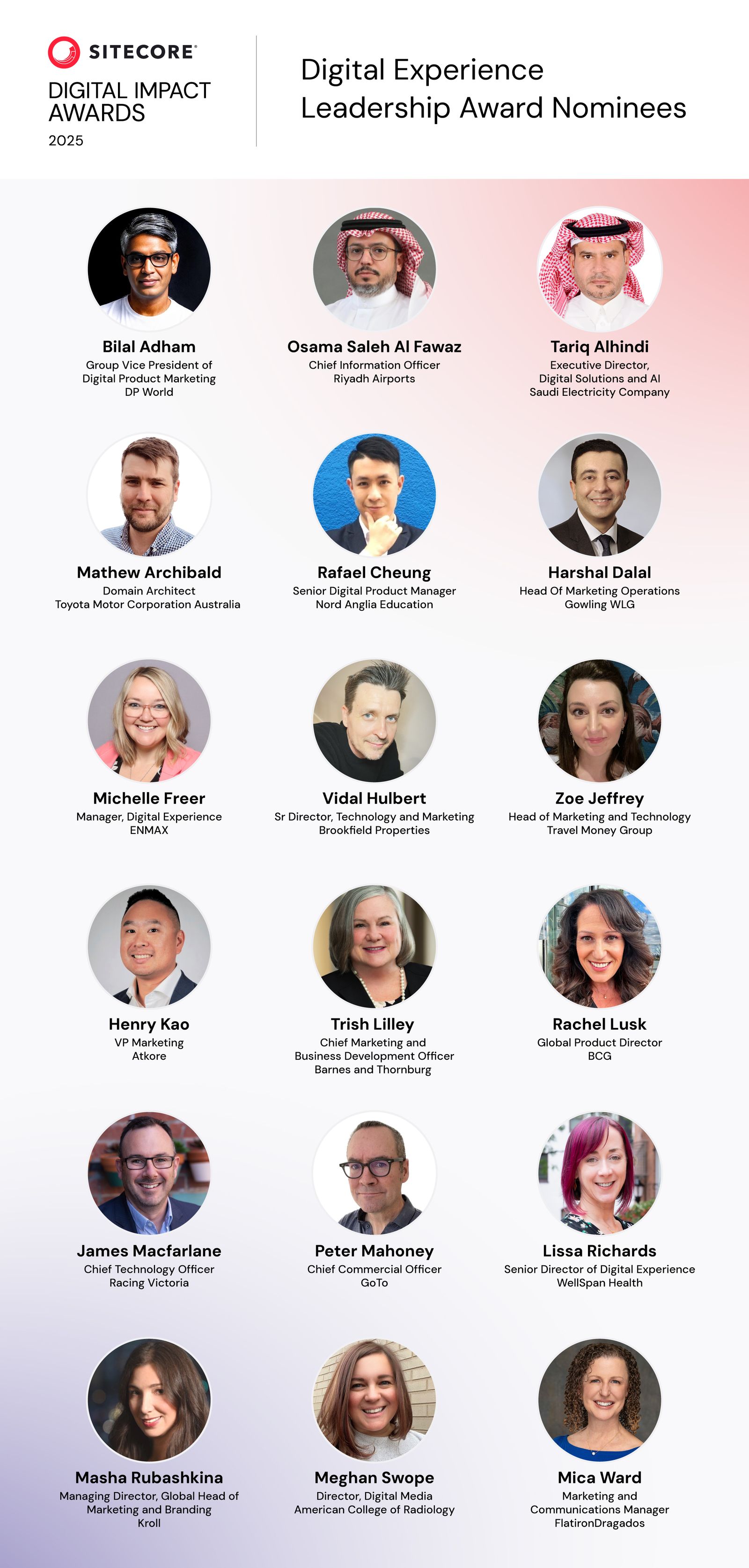 Judging is underway. In October, we'll reveal the finalists, with each receiving a complimentary Sitecore Symposium pass. Winners will be celebrated in person at Sitecore Symposium, kicking off November 3 in Orlando. Stay tuned as we spotlight the teams driving digital innovation with Sitecore.